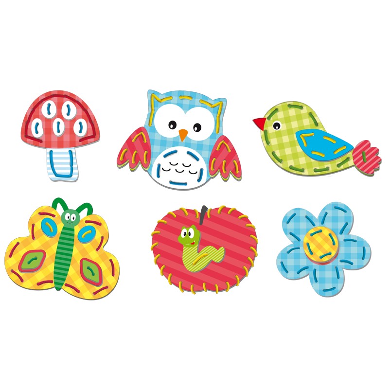 Zestaw do kreatywnej zabawy doskonalący sprawność manualną najmłodszych. Dzieci mogą swobodnie łączyć ze sobą poszczególne elementy zestawu bądź ubarwiać pojedyncze przez przewlekanie i przeplatanie kolorowych sznurowadeł.