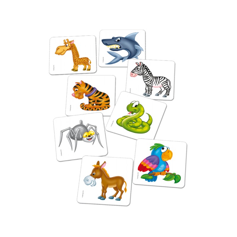 Gra wprowadzi Twojego malucha we wspaniały humor, a jednocześnie zaznajomi go z gatunkami zwierzątek i ich cechami charakterystycznymi. Gra uczy refleksu, analizy wzrokowej i słuchowej, a także skłania malucha do liczenia. Zestaw „Zagadkowe zoo” zawiera miedzy innymi kolorową planszę z postaciami zwierzątek, 24 karty z zagadkami i instrukcję gry.