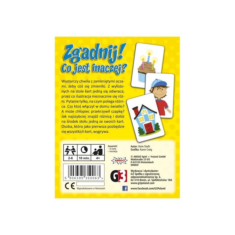 Czy ktoś włączył w domu światło? A może chłopiec przekrzywił czapkę?Jak najszybciej znajdź różnicę i dołóż na środek stołu jedną ze swoich kart!