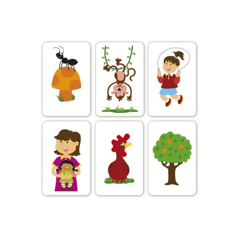 Widzicie te pięć kart na środku stołu? Lepiej dobrze je zapamiętajcie! Teraz zamknijcie oczy i odwróćcie jedną z wyłożonych kart na drugą stronę. Na dany znak spójrzcie na karty i postarajcie się dostrzec zmianę jaka w nich zaszła. Ten kto jako pierwszy poprawnie odgadnie różnicę może dołożyć jedną ze swoich kart na środek stołu. Ale najpierw niech pozostali graczcze zamkną oczy!