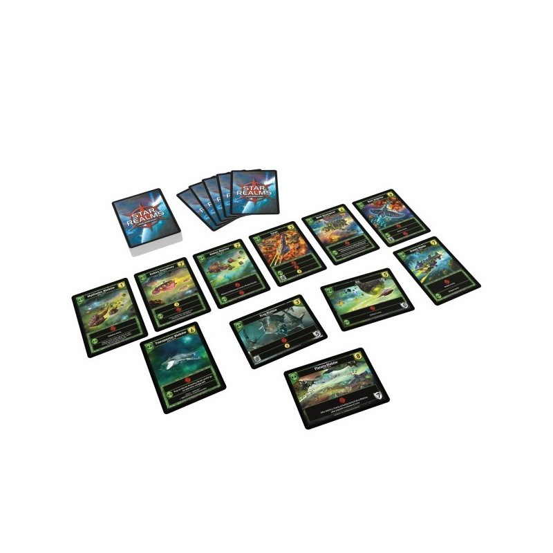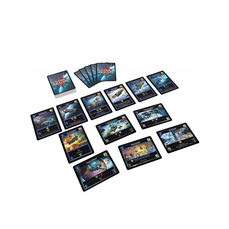Star Realms jest kompletną 2-osobową grą zawierającą instrukcję i 128 podstawowych kart. Aby grać w więcej osób, wystarczy połączyć ze sobą dwa lub więcej zestawów podstawowych.