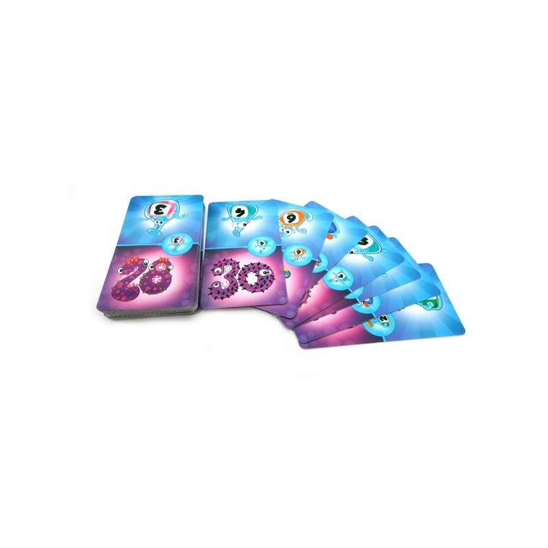 - 60 kart (24 karty z zielonymi potworami, 36 kart z fioletowymi potworami)