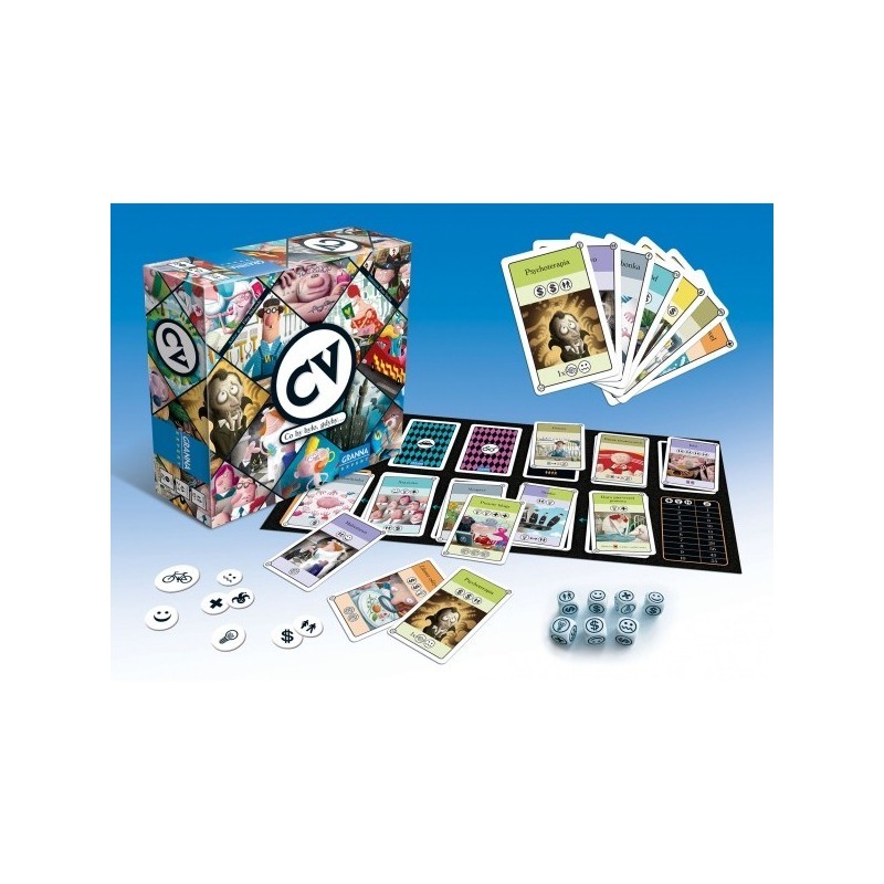 W grze "CV" wszystko jest możliwe: wymarzona praca, nowe relacje i umiejętności... Możesz zostać, kim tylko chcesz! Buduj swoją historię krok po kroku – na końcu gry uzyskasz unikatowy układ kart: swoje curriculum vitae. Gracz, który najlepiej zrealizuje życiowe plany, zostanie zwycięzcą.