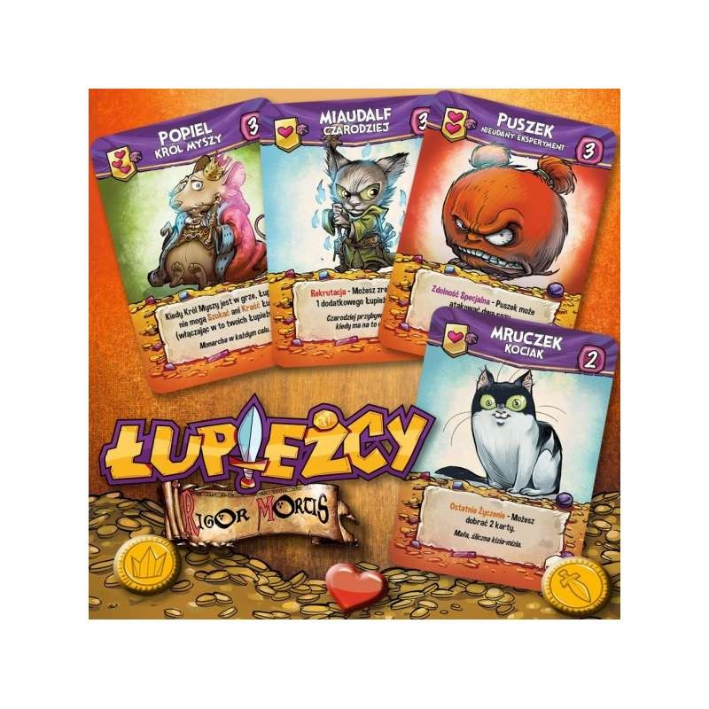 Łupieżcy to szybka i łatwa do nauczenia gra karciana z niesamowitymi ilustracjami i mnóstwem interakcji! Korzystając ze wspólnej talii, gracze tworzą kombinacje bohaterów, których moce pomogą im odnaleźć skarby i utrudnić poszukiwania przeciwnikom!