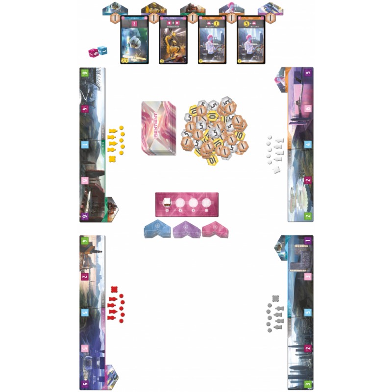 Sentient to gra dla 2 do 4 osób, w której będziesz manipulować swoimi kartami reprezentującymi roboty i tworzyć z ich pomocą układ oraz kalibrować swoimi kośćmi tak, aby uzyskać jak największą przewagę nad przeciwnikami.
