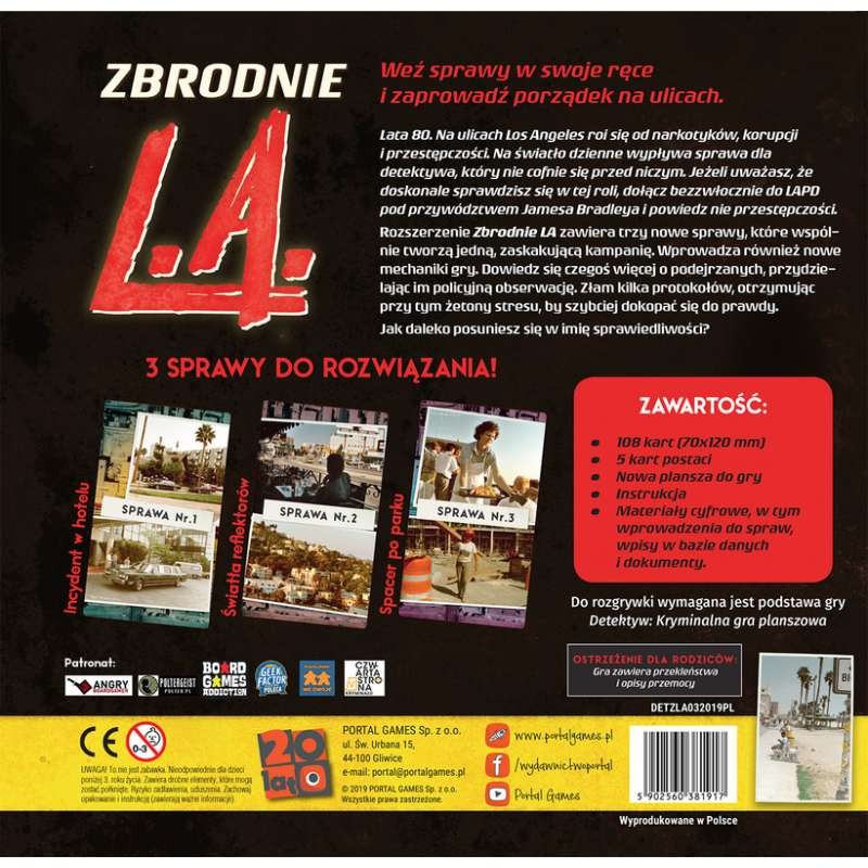 Ten wymagający dodatek dla 1 – 5 graczy, pozwoli Ci wcielić się w grupę detektywów z LAPD, pracujących nad trzema różnymi sprawami, ale każda z spraw ma wpływ na kolejną. Razem tworzą jedną kampanie, która wystawi Twoje umiejętności na próbę.