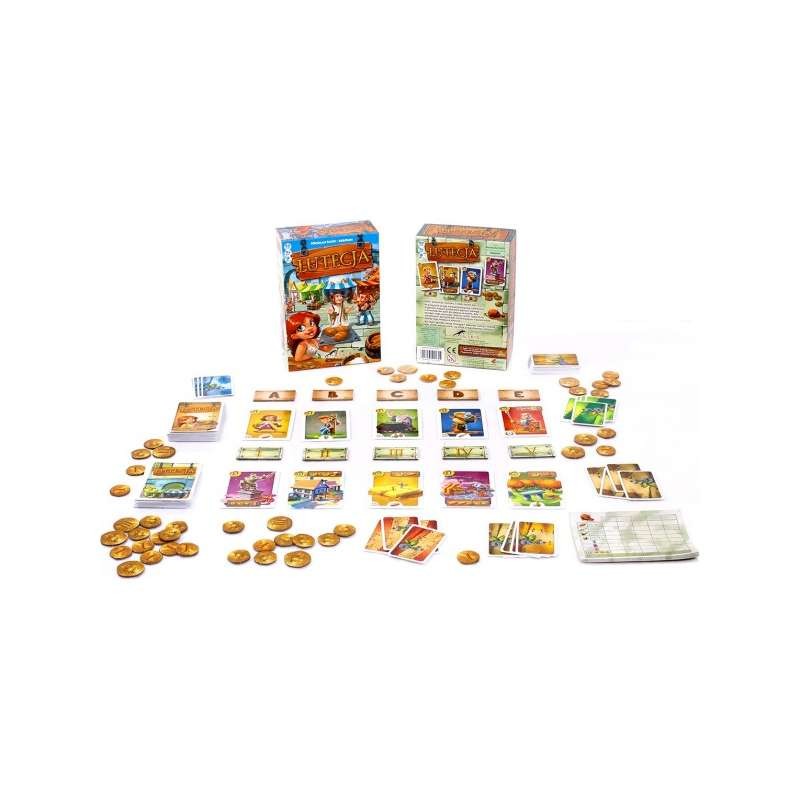 Lutecja to szybka do wytłumaczenia gra z elementami licytacji i blefu. W każdej rundzie będziecie starać się zdobyć karty postaci i/lub miejsc. W ten sposób zdobywacie punkty zwycięstwa i kontrolę nad zasobami oraz budynkami.