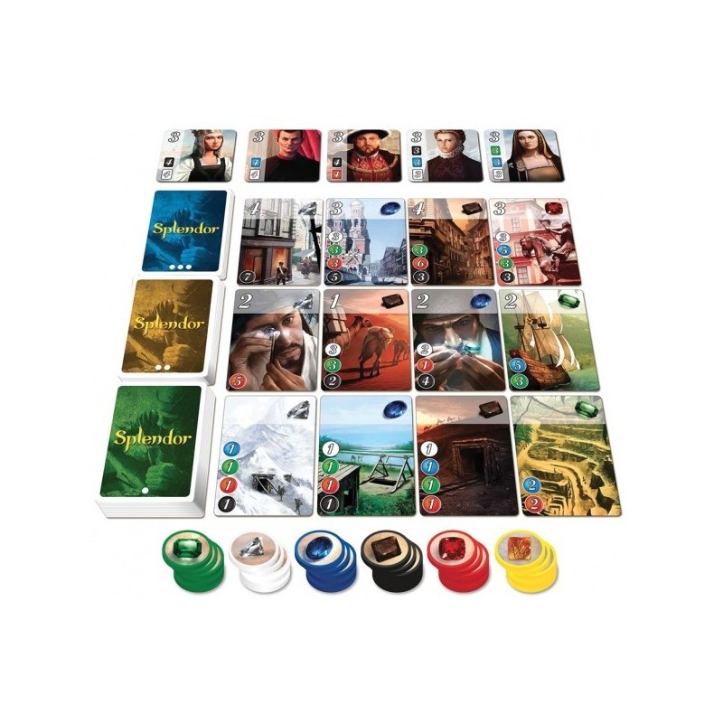 W grze Splendor wcielasz się w bogatego kupca, przemierzającego XVI-wieczną Europę, Azję, Afrykę i Amerykę. Kupując karty z miejscami wydobycia, otrzymujesz dostęp do szlachetnych kamieni, takich jak szafiry, diamenty czy agaty. Każdy z tych kamieni rozpoznawany jest poprzez konkretny kolor: czerwony, czarny, biały, niebieski i zielony. Do Twojej dyspozycji jest także złoto, które w grze odgrywa rolę "jokera", zastępując każdy inny kolor. Cała zabawa polega na tym, że kupując kartę, musisz zapłacić określoną kombinację kamieni/kolorów. Jeśli nie masz odpowiednich kart, zawsze możesz zrobić pożyczkę z banku. Gra toczy się do momentu, aż któryś z graczy osiągnie sumę 15 punktów w kartach. Należy uważać, gdyż nie wszystkie karty są punktowane, ale mogą stać się dla nas przepustką do zakupu kolejnych. Czasem sława o naszym bogactwie dociera do uszu władców Starego Kontynentu, którzy po spełnieniu określonych warunków przyłączą się do nas, wnosząc do puli dodatkowe 3 punkty splendoru.