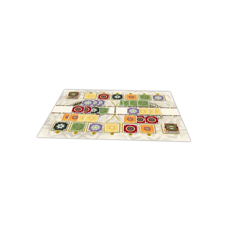 Na płóciennej macie do gry znajdziemy dwie mandale, które są naszym obszarem gry. Każda z nich podzielona jest na strefę wspólną oraz dwie części należące do graczy. Oznacza to, że każdy z uczestników może wykładać karty na dwóch strefach wspólnych oraz dwóch częściach mandali znajdujących się po jego stronie stołu.