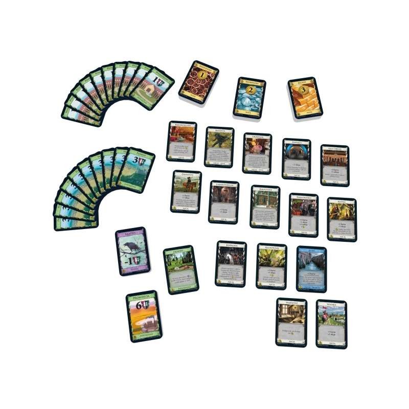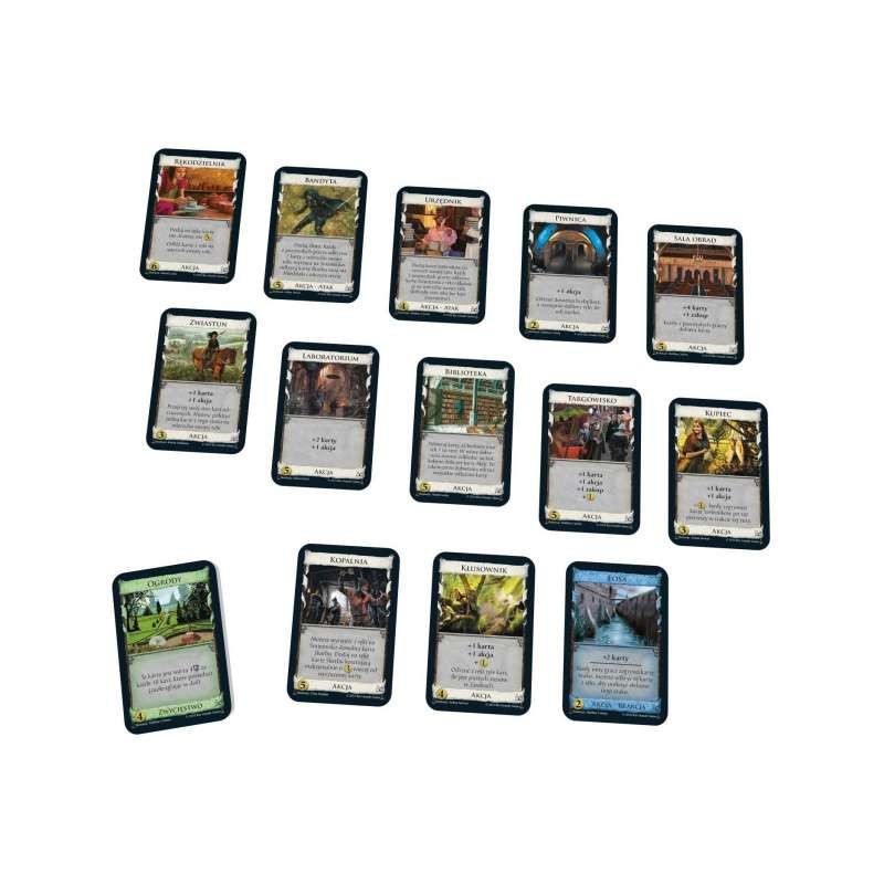 - 252 karty Królestwa (Po 10 kart: Odkrywcy, Urzędnika, Piwnicy, Kanclerza, Kaplicy, Sali obrad, Uczty, Festynu, Laboratorium, Biblioteki, Milicji, Kopalni, Fosy, Lichwiarza, Przebudowy, Kuźni, Szpiega, Złodzieja, Sali tronowej, Wioski, Wiedźmy, Drwala i Warsztatu a także 12 kart Ogrodów)