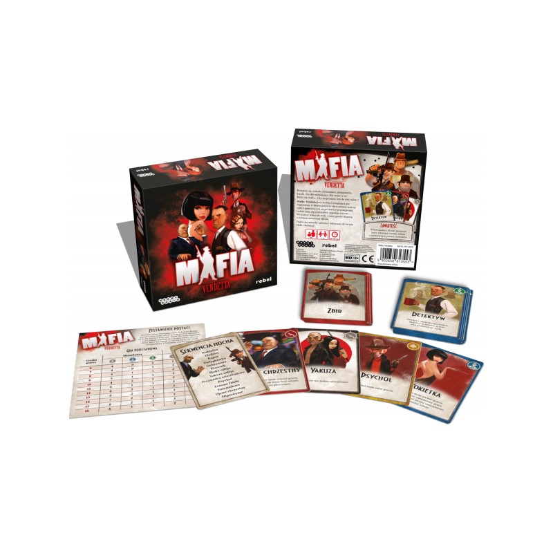 Mafia: Vendetta to imprezowa gra blefu i dedukcji, w której uczestnicy wcielają się w losowo przydzielone role. Celem mafii jest wyeliminowanie odpowiedniej liczby cywilów, ci z kolei mają za zadanie wytępić wszystkich członków przestępczej organizacji.