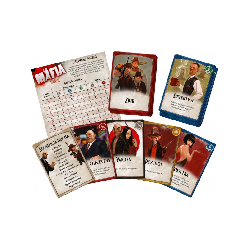 - Mafia: Vendetta oferuje jedenaście różnych ról cywilnych i pięć różnych ról mafii. Zawiera również dwa różne tryby alternatywne, w tym jeden wprowadzający nową frakcję: Yakuzę.