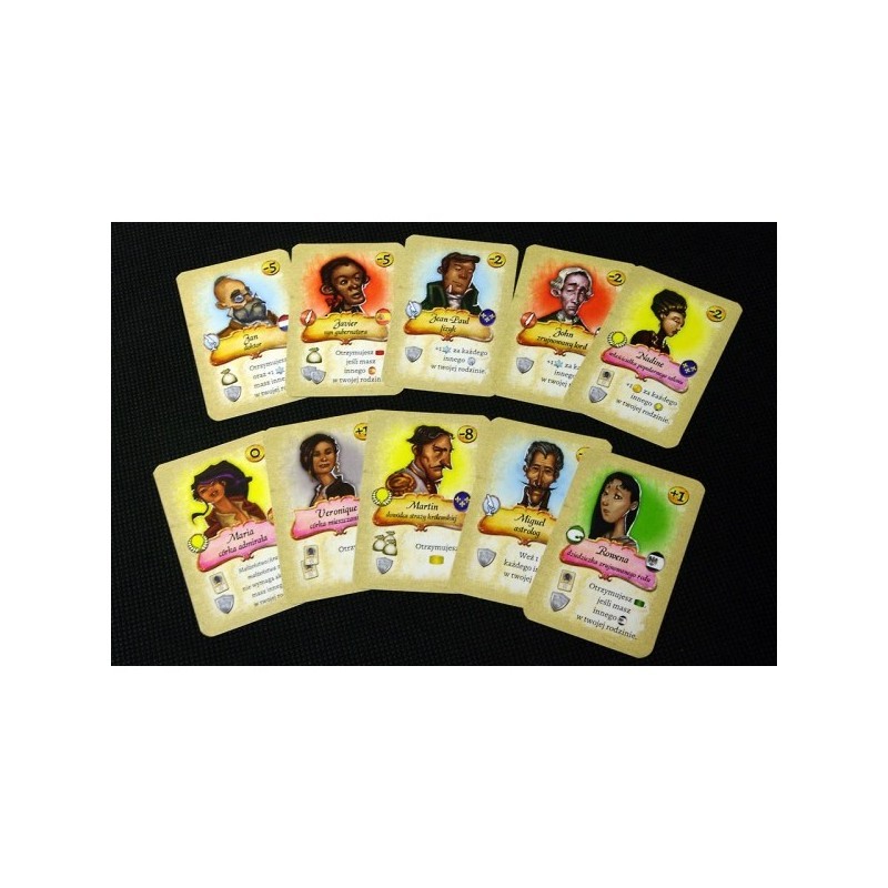 W grze – znanej wcześniej jako Nobles of Paris, zwycięzcy konkursu Ducosim Spelontwerp na najlepszy prototyp – znajdziecie 75 kart małżonków z unikalnymi zdolnościami, ponad 20 sekretnych misji, 9 tytułów, 9 zasług dla społeczności i wiele innych. Wszystko to łączy się w prawdziwie klimatyczną grę karcianą o olbrzymiej regrywalności i z wieloma różnorodnymi drogami do zwycięstwa.