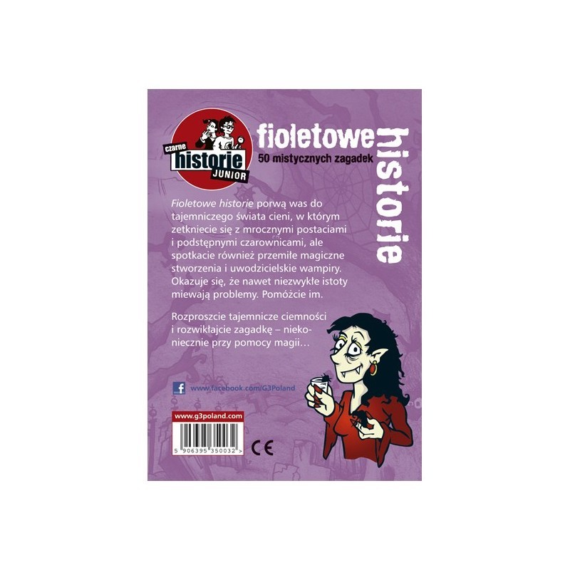 Fioletowe historie porwą was do tajemniczego świata cieni, w którym zetkniecie się z mrocznymi postaciami i podstępnymi czarownicami, ale spotkacie również przemiłe magiczne stworzenia uwodzicielskie wampiry. Okazuje się, że nawet niezwykłe istoty miewają problemy. Pomóżcie im.