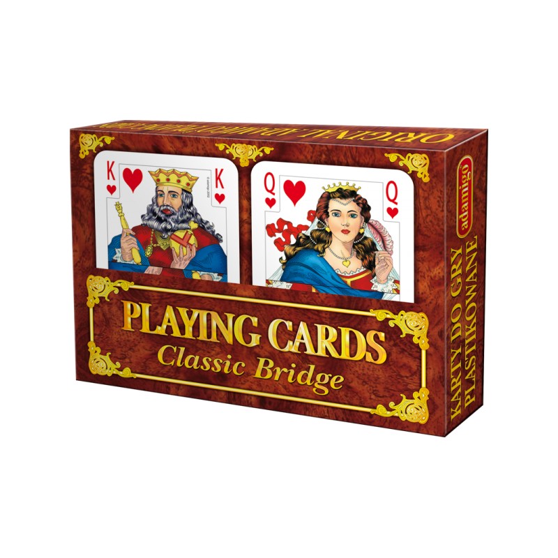 Komplet brydżowy to klasyczny zestaw karciany. Gra w karty uczy strategii, a jednocześnie rozwija zdolność logicznego myślenia. Karty wchodzące w skład kompletu, wykonane są starannie i są bardzo trwałe. Gra w karty to ciekawa rozrywka, w którą możesz grać ze znajomymi lub w gronie rodzinnym.