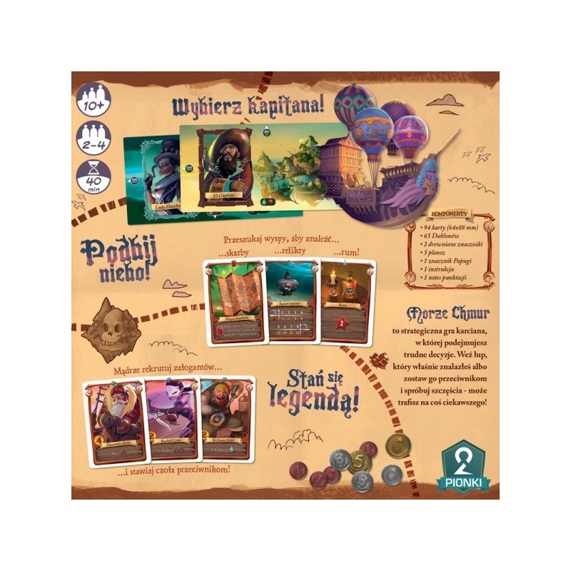 Wciel się w rolę kapitana latającego okrętu. Werbuj bezlitosnych załogantów, dzielcie się łupami i kupujcie za nie morze rumu. Wysyłaj swoich piratów, by przejmowali wrogie statki i plądrowali ukryte na nich skarby. A przede wszystkim gromadź punkty zwycięstwa, aby zasłużyć na miano Władcy Morza Chmur!