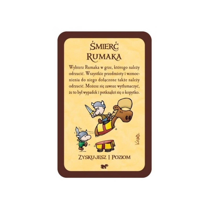 Masz już dosyć przemierzania lochów pieszo? Tachania tego całego sprzętu na plecach? Nie ufasz już kumplom i masz uczulenie na noże? Uważasz, że to banda fałszywych degeneratów, którzy chcą pokonać Twoje potwory, zgarnąć ich skarby i wykiwać całą resztę? Ten dodatek właśnie jest dla Ciebie! Od teraz munchkinowe stajnie są pełne wierzchowców, m.in. Potężnych Rumaków Bojowy, Ziejących Ogniem Smoków , Gdaczących Kur oraz Orłów, na których wzniesiesz się ku przestworzom…lochów! No i każdy z Rumaków ma wypasione moce! Dodatkowo znajdziesz tu całą masę Przydupasów, którzy bez zmrużenia oka oddadzą za Ciebie życie, abyś mógł spokojnie Uciec. Albo poniosą Twój dobytek i podsuną broń we właściwym momencie, więc używaj ich bonusów i zdolności, plądruj lochy i zostań super Munchkinem!