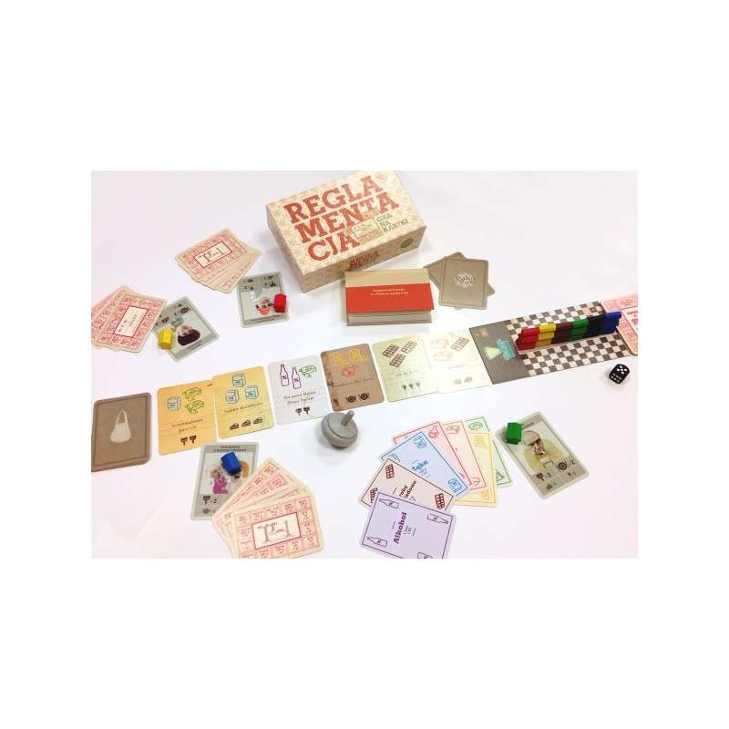 Jeżeli zdecydujecie się na rozgrywkę, czeka Was trudne zadanie. Cofacie się do czasów PRL, by zimą 1983 roku powalczyć o dodatkowe kartki na mięso, cukier i inne dobra. Waszym zadaniem jest zrobienie zakupów przed zapowiedzianą wizytą gości. Niestety towar w sklepie jest reglamentowany, a kartki z przydziału często nie odpowiadają temu co musicie kupić. Potrzebne kupony reglamentacyjne mają za to inni. Szybko orientujecie się, że sukces zależy od sprawnego wymieniania się kartkami z graczami stojącymi w kolejce. Musicie się jednak śpieszyć, bo sklepowa zaraz dopije herbatę i zacznie sprzedawać. W tej emocjonującej grze negocjacyjnej handel odbywa się jedynie w ciągu minuty. Karol Madaj, twórca Reglamentacji. Gry na kartki, stworzył niezwykle dynamiczną grę planszową w której do zwycięstwa będziecie potrzebować trochę szczęścia, nieco zręczności oraz żyłki do handlu.