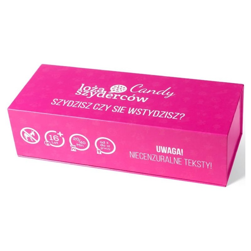 Loża Szyderców: Candy to najnowsza wersja gry karcianej pełnej czarnego humoru. Kolor pudełka jasno wskazuje tematy, które zostały poruszone w najnowszej edycji. Hasła na kartach zdradzają całą prawdę o seksie, kobietach, związkach, byłych partnerach, podrywach czy blogerkach.