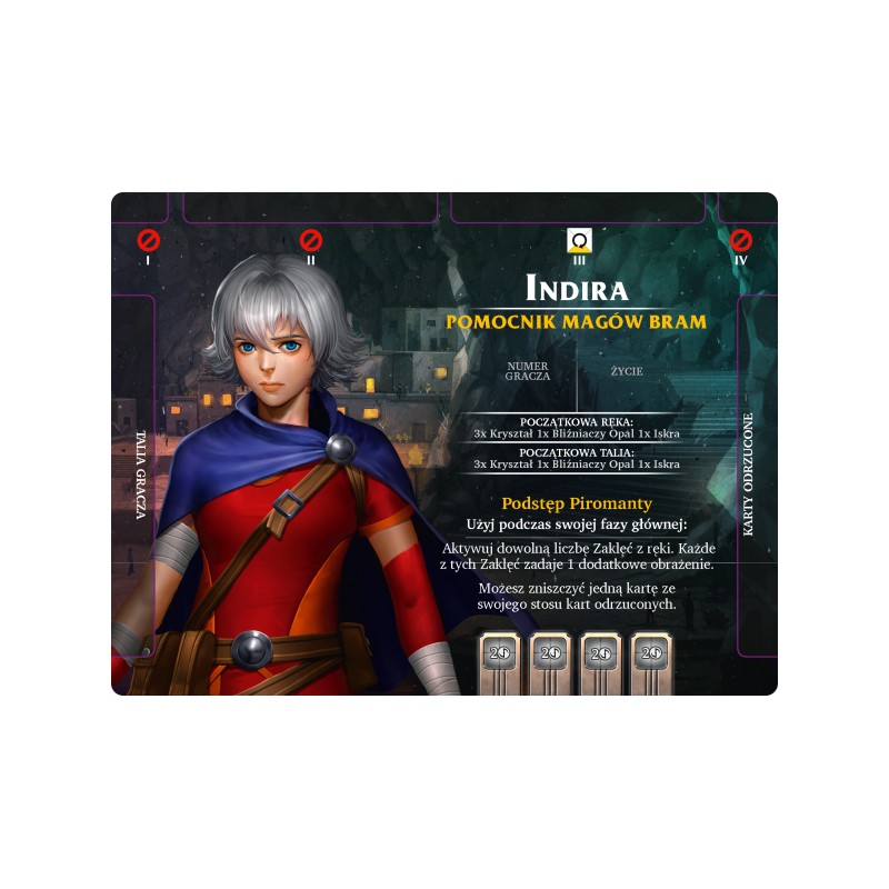 Indira, Pomocnik Magów Bram dzięki swojej niszczycielskiej umiejętności Podstęp Piromanty potrafi rzucać zaklęcia prosto z ręki, nie musi ich wcześniej umieszczać na Bramach!