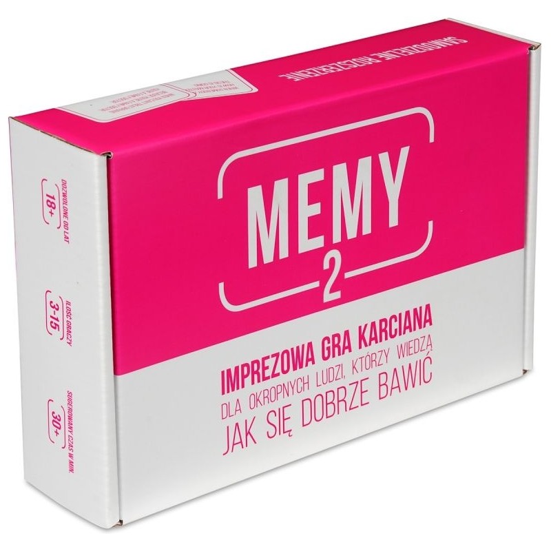 Memy 2: Imprezowa gra karciana to gra dla okropnych ludzi, którzy wiedzą jak się dobrze bawić. W każdej kolejce jeden z graczy odsłania zdjęcie a pozostali gracze tworzą z niego mam, za pomocą swojej najzabawniejszej karty.