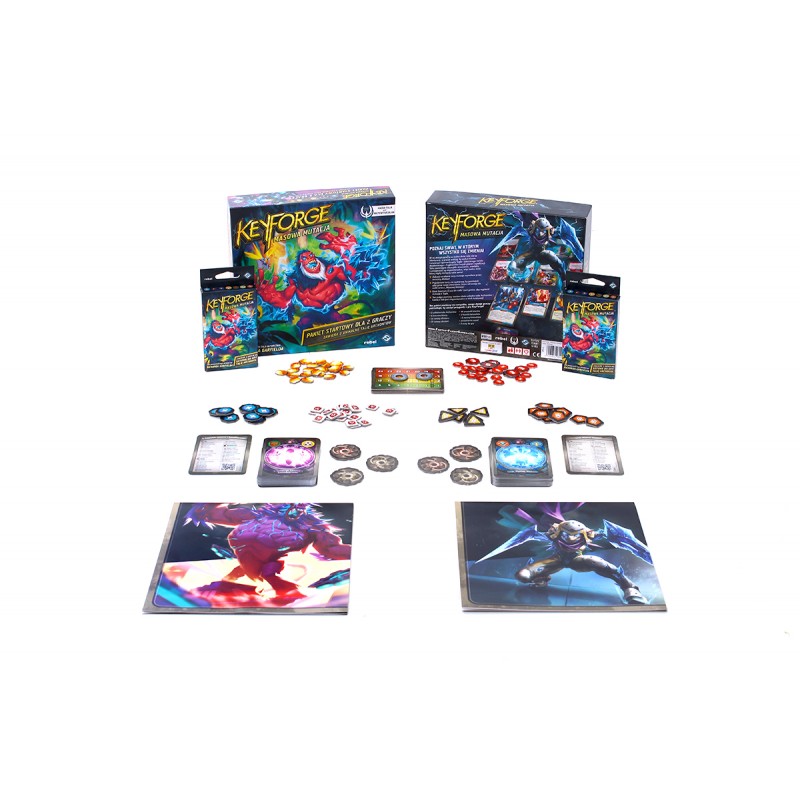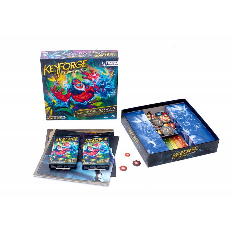 Masowa Mutacja to czwarta odsłona serii KeyForge. Tym razem talie losowane są z puli 422 kart, a ponad 250 z nich to całkowite nowości! Znajdziesz wśród nich zmutowane wersje znanych stworzeń, a także niespotykane dotąd monstrualne kreatury, które nie mieszczą się na jednej karcie.