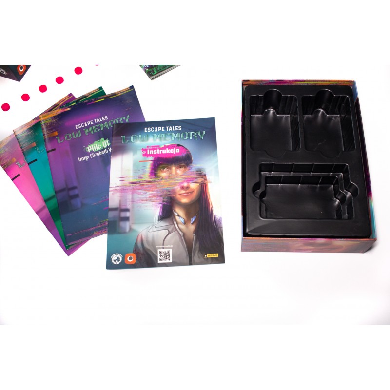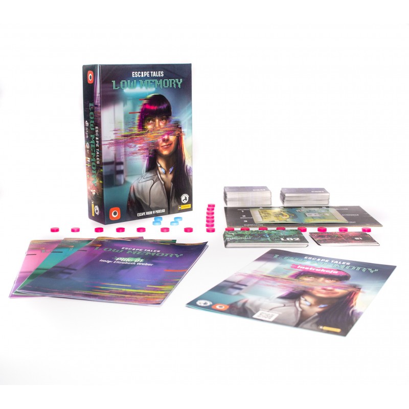 Escape Tales: Low Memory to gra karciana typu escape room dla 1 do 4 graczy, z mocnym naciskiem na fabułę. Gra skupia się nie tylko na wymagających zagadkach, lecz także na wciągającej historii, na którą będziesz miał wpływ podczas rozgrywki.