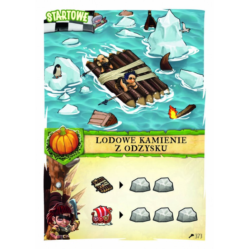 W pudełku znajdziesz dwie talie klanów Barbarzyńców: Boudiki i Urvarta, po 33 karty w każdej. Są tam także dodatkowe karty wysp, żetony statków dla obu klanów i tratw (tylko dla Boudiki) oraz żetony zasadzki dla Urvarta.