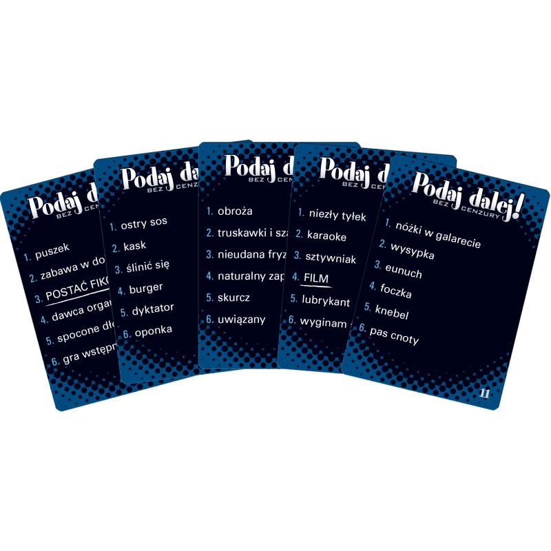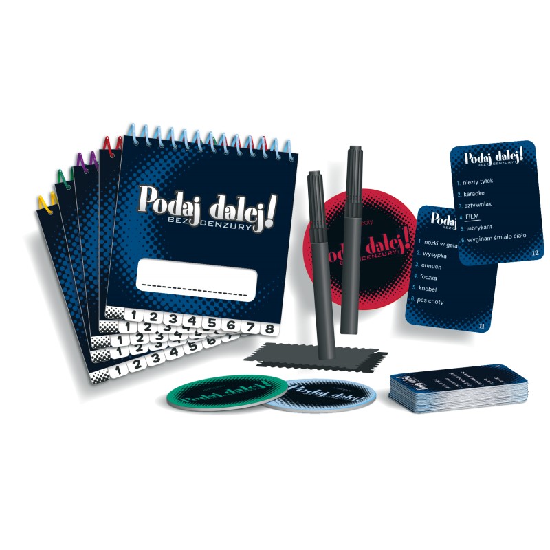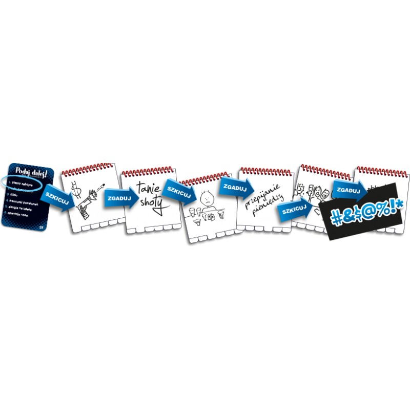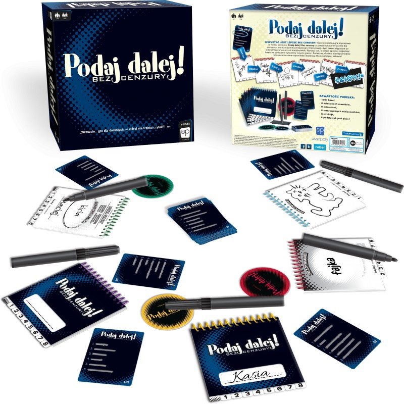 Podaj dalej! Bez cenzury to jeszcze bardziej nieoczywiste hasła, a co za tym idzie jeszcze więcej zabawnych pomyłek! Nasza wyobraźnia będzie musiała wejść na najwyższe obroty, żeby odgadnąć, co też narysowali pozostali.