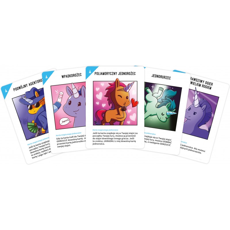 Bezkonkurencyjna gra imprezowa powraca, tym razem w znacznie bardziej niegrzecznej wersji! Odjechane Jednorożce: Bez cenzury to strategiczna karcianka pełna śmiechu i destrukcji, złośliwych zagrywek i radosnego rżenia! Każdy z nas zacznie z uroczym, małym jednorożkiem, który stanowi zalążek pełnoprawnej armii zniszczenia. Zwyciężymy, jeśli będziemy umiejętnie wykorzystywać wpływające na siebie efekty kart i mądrze wybierzemy cele, które zaatakujemy.