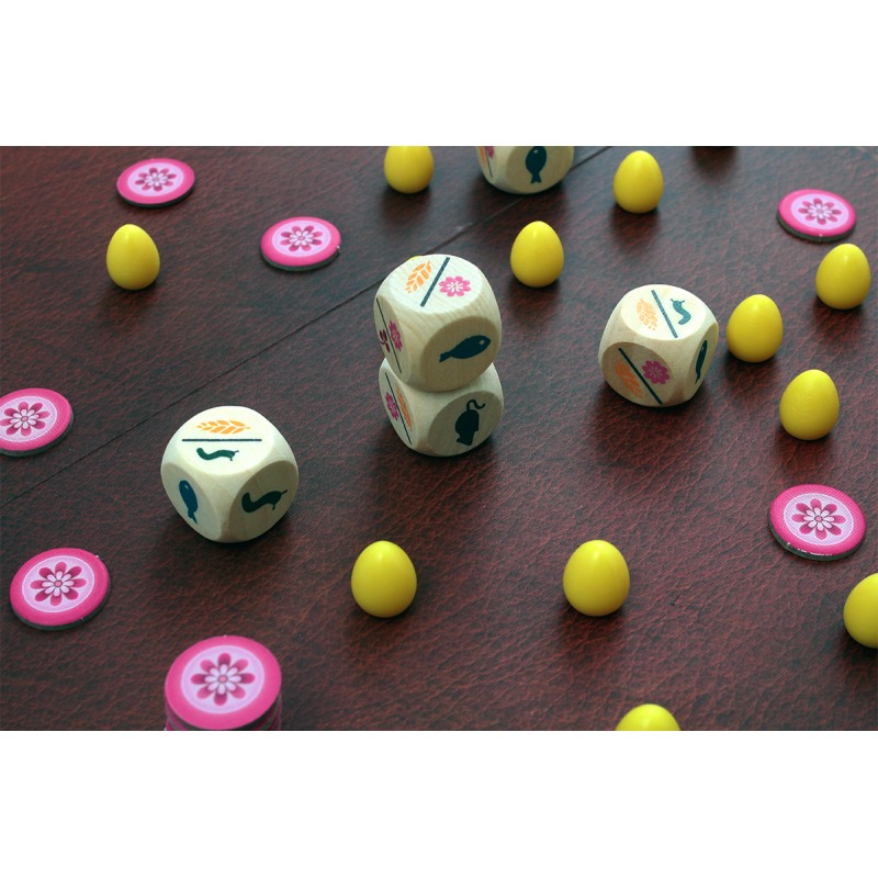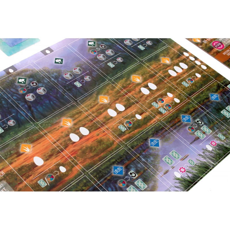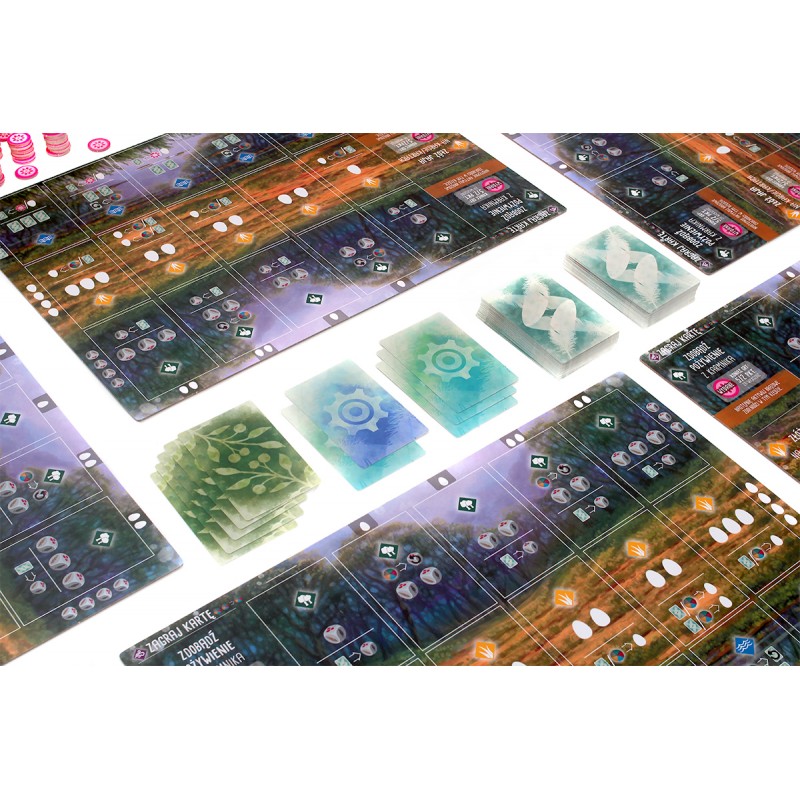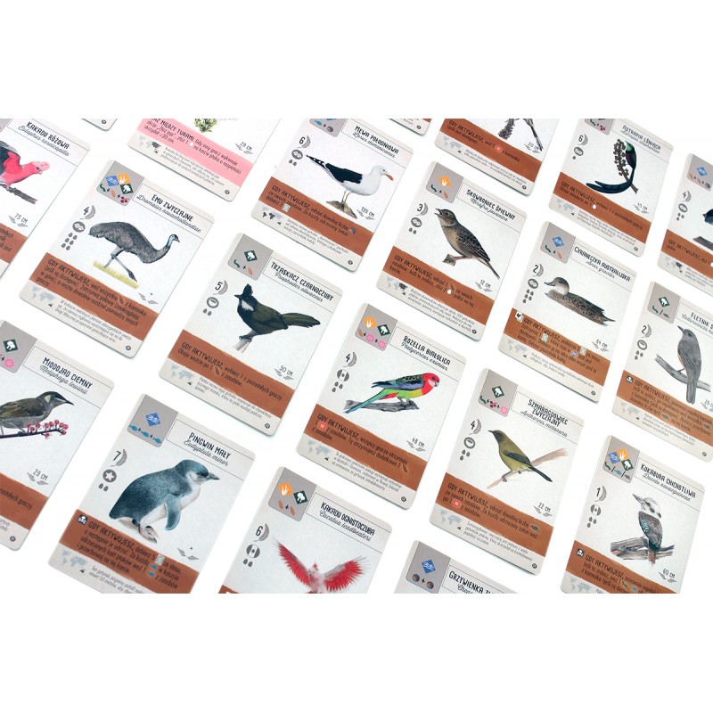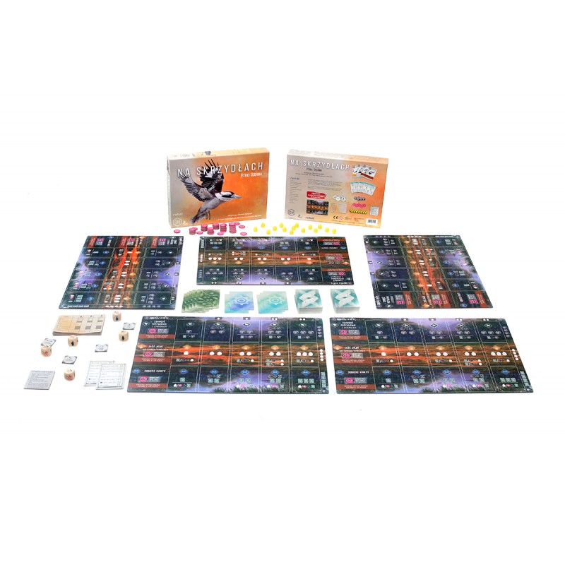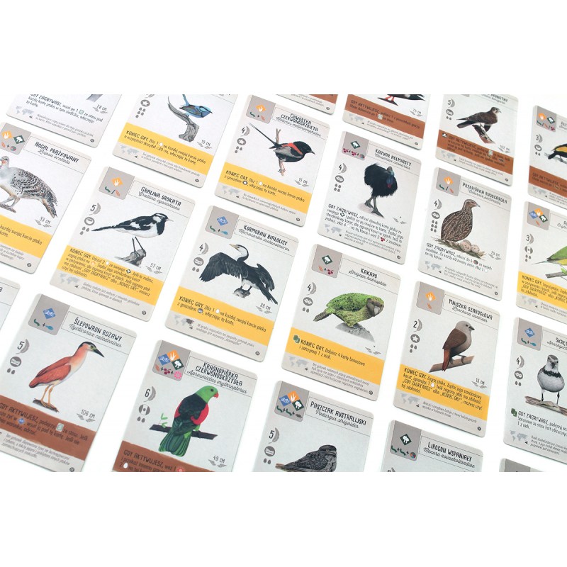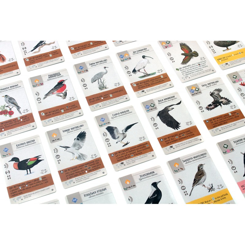 Oprócz 95 kart dodatek Ptaki Oceanii zawiera również nowe elementy, pozwalające planować strategie ściśle związane z gatunkami występującymi w tej części świata: plansze graczy, a także kości i żetony pożywienia. W pudełku znajdują się również nowe karty bonusowe i żetony celów, a także 15 żółtych jaj. Ich kolor nie ma znaczenia w rozgrywce, urozmaica jedynie paletę barw jaj występujących w grze.