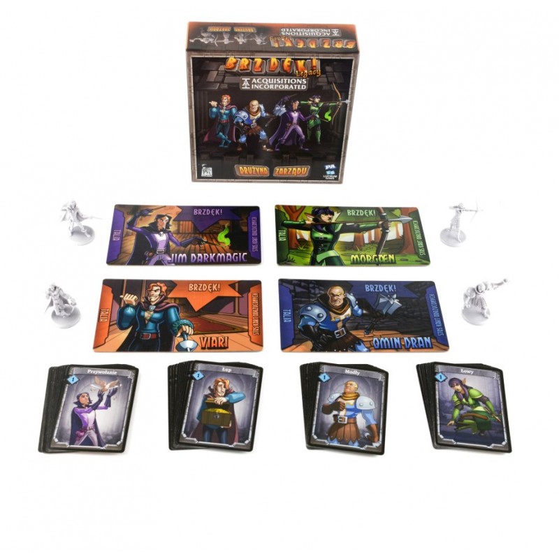 Każda postać należąca do Drużyny Zarządu posiada swoją figurkę oraz unikalną talię startową, odwzorowującą jej umiejętności. Wykorzystaj ją w rozgrywce Brzdęk! Nie drażnij smoka albo otwórz nową franczyzę w Brzdęk! Legacy: Acquisitions Incorporated.