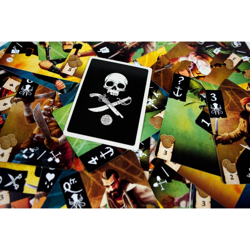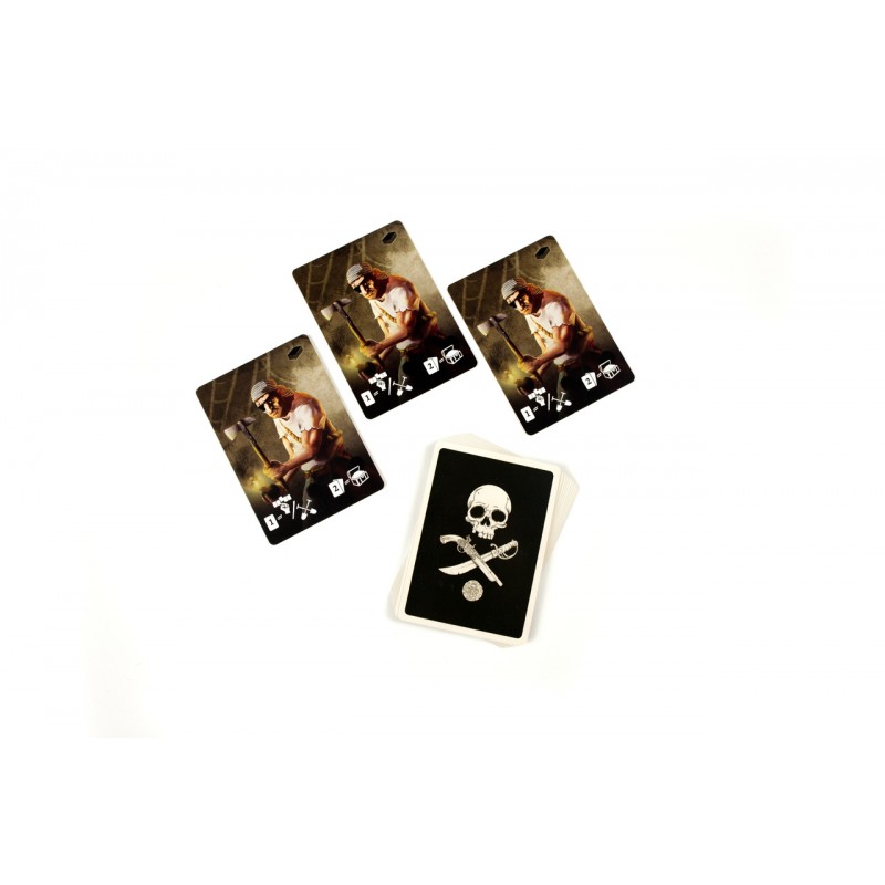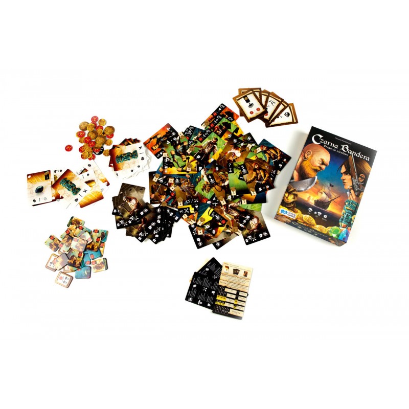 Czarna Bandera to gra karciana która wprowadza gracza w okrutny, ale też pasjonujący świat prawdziwych wilków morskich! Podstawową mechaniką rozgrywki jest budowanie talii. W każdej turze gracz musi zagrać kartę lub zestaw kart z ręki, po czym może kupić nowe karty do swojej talii.