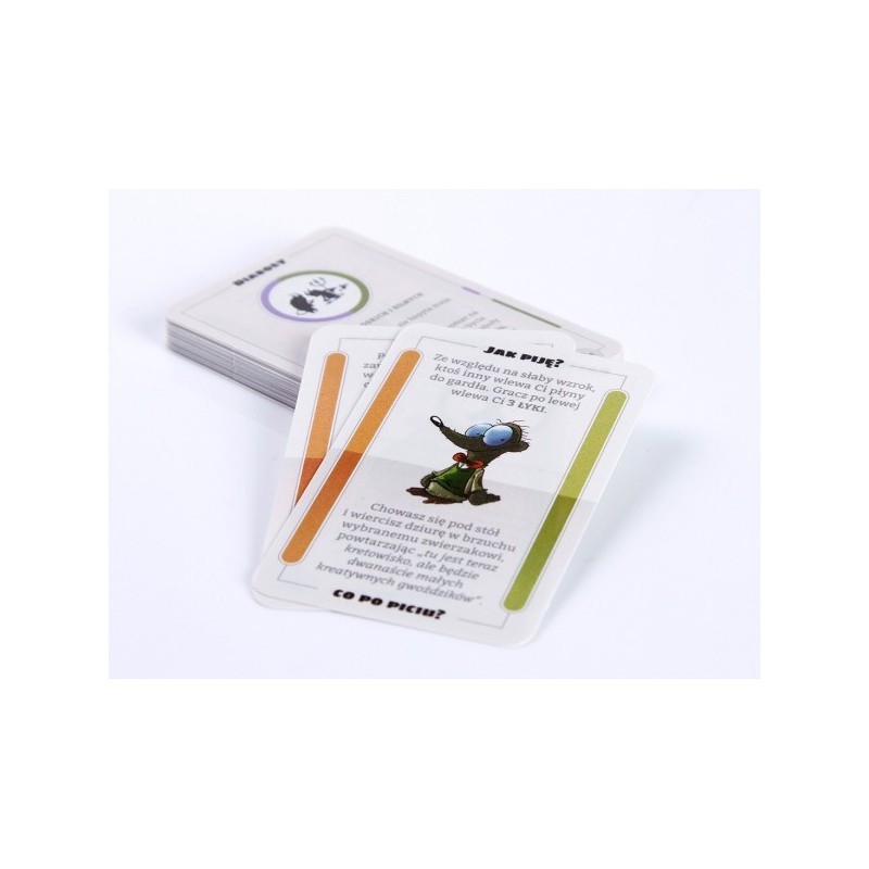 Wykładając karty tworzysz sposób, w jaki kolejny gracz ma się napić swojego trunku. Być może będzie musiał popłynąć jak rekin z płynem w ustach, albo w kilka sekund zdjąć sobie skarpetki popijając w tym czasie alkocosia.