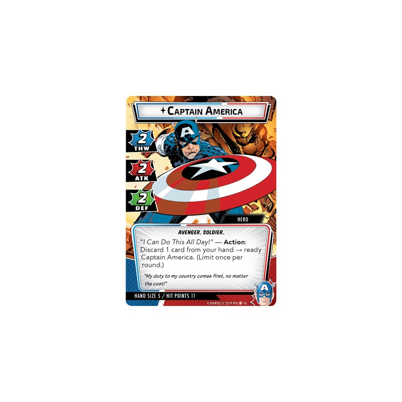 Dzięki swojej tarczy wykonanej z czystego vibranium, Kapitan Ameryka poprowadzi atak na każdego, najbardzej zatwardziałego wroga, inspirując swoich towarzyszy bohaterstwem i odwagą.