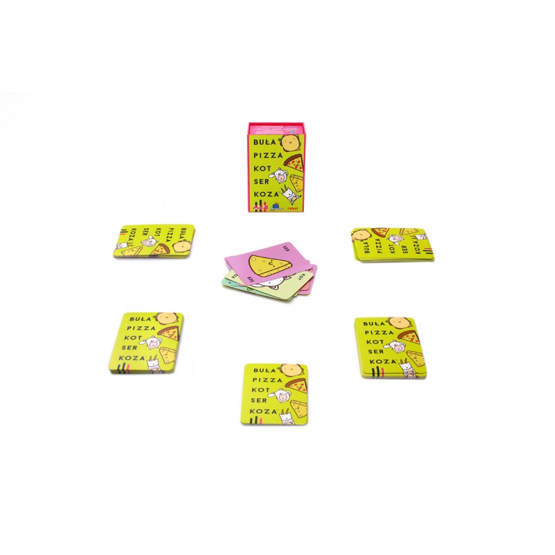 Buła, Pizza, Kot, Ser, Koza - gra równie szalona, jak jej nazwa! To wyjątkowe połączenie Jungle Speeda i Uga Buga! z pewnością spodoba się wszystkim fanom głośnych, dynamicznych zabaw, które bezlitośnie karzą tych, którym zdarzy się zagapić!