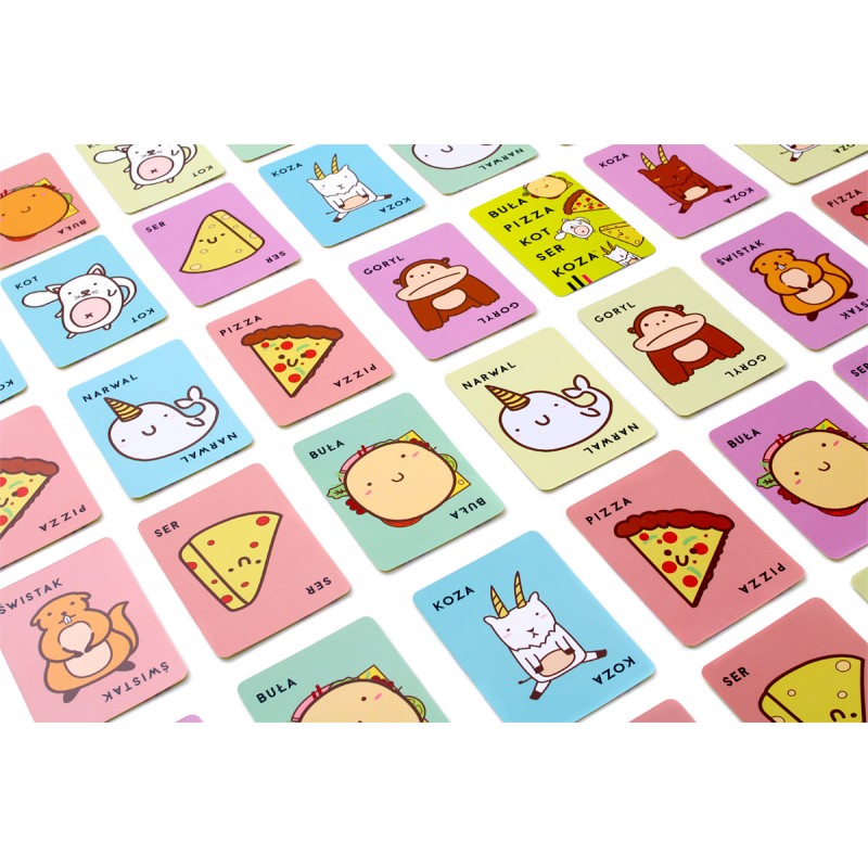 Buła, Pizza, Kot, Ser, Koza to gra niesamowicie uniwersalna. Malutka, więc nadaje się do zabrania w absolutnie każdą podróż. Prosta, więc nie wymaga długiego tłumaczenia. A do tego trwa krótko, a do samej zabawy nie potrzebujemy wiele miejsca. Wystarczy kawałek płaskiej powierzchni, który możemy wspólnie otoczyć.