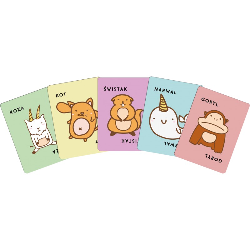 Opanowane? To świetnie, bo czekają na Was jeszcze karty z Narwalami, Gorylami i Świstakami, które tylko czekają, żeby zburzyć Wasz rytm gry! Gdy pojawią się na stole, musicie jak najszybciej wykonać przypisane do nich gesty.