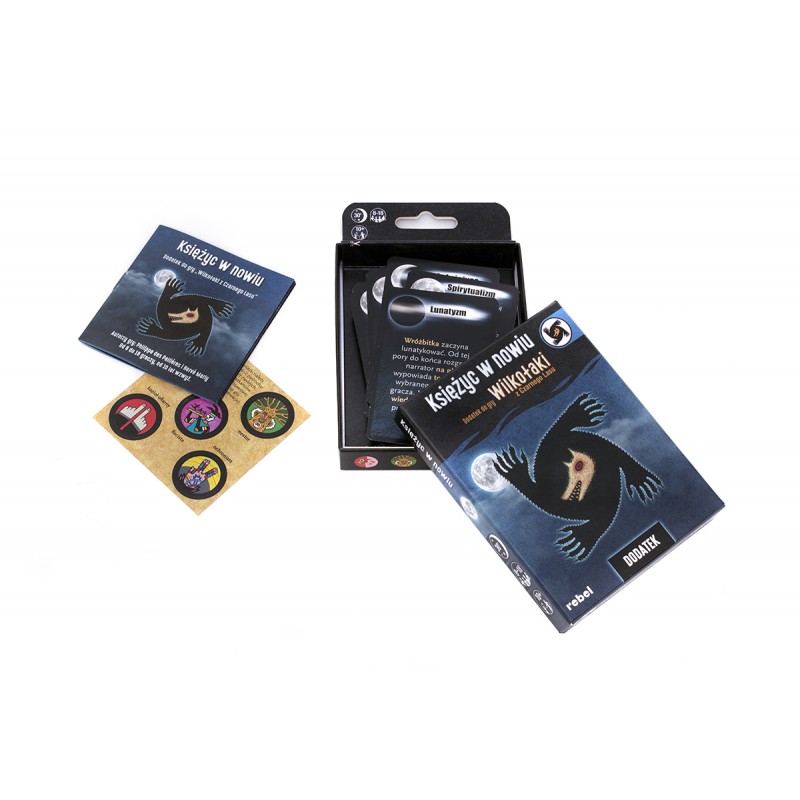 Księżyc w nowiu to rozszerzenie do gry Wilkołaki z Czarnego Lasu, które zawiera wiele ciekawych, alternatywnych wariantów zabawy. Część z nich podwyższa poziom trudności gry poprzez wprowadzenie dodatkowych zasad, inne wskazują, jak bawić się w większym gronie, jeśli posiadamy więcej niż jeden egzemplarz gry. Zestaw zawiera również 5 zupełnie nowych postaci, które dodatkowo urozmaicą nasze rozgrywki.