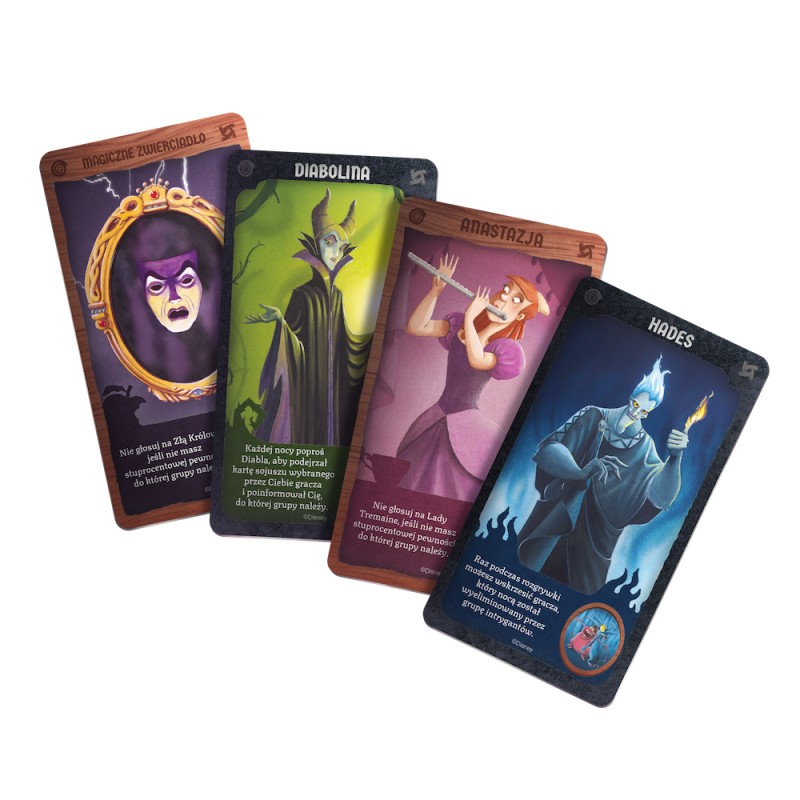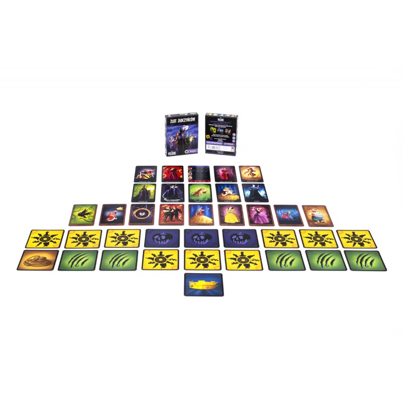 Disney Villains: Zlot złoczyńców to narracyjna gra blefu i dedukcji, w której uczestnicy wcielają się w postacie łotrów z bajek Disneya albo w ich popleczników. Każdy z graczy otrzymuje też kartę jednego z dwóch sojuszy: siewców chaosu oraz intrygantów.