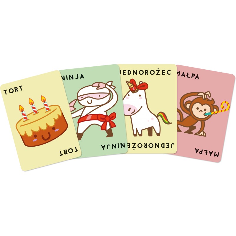 - Opanowane? To świetnie, bo czekają na Was jeszcze karty z Ninja, Małp i Jednorożców które tylko czekają, żeby zburzyć Wasz rytm gry! Gdy pojawią się na stole, musicie jak najszybciej wykonać przypisane do nich gesty.