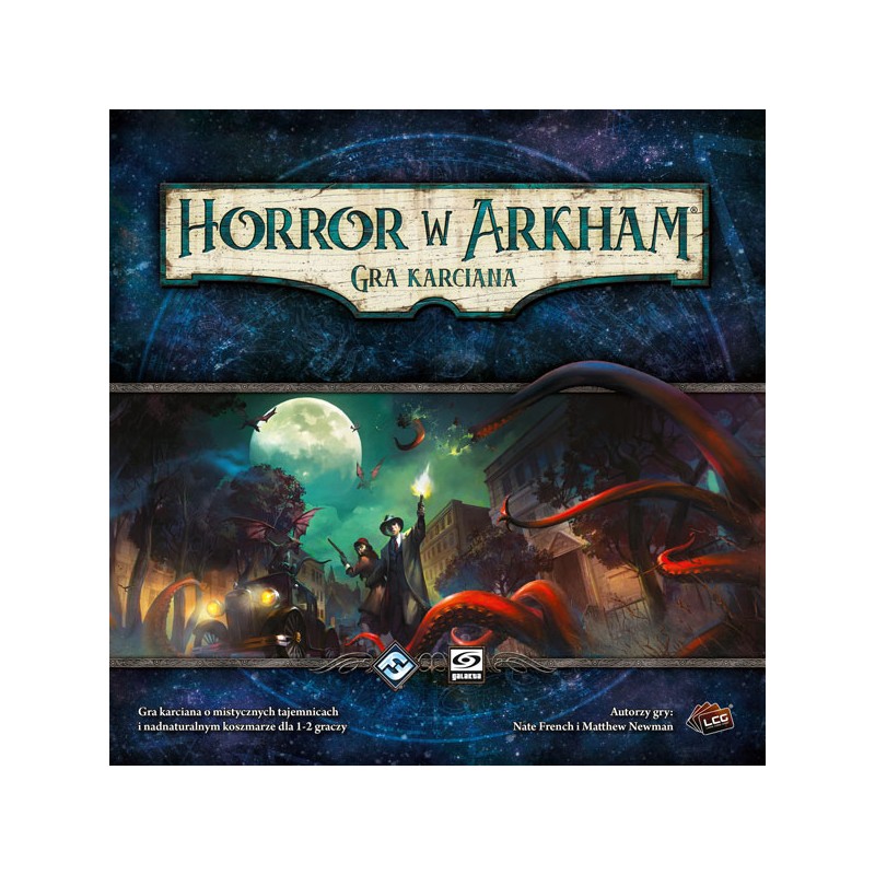 Horror w Arkham: Gra karciana (LCG) - Zestaw PodstawowyW sennym miasteczku Arkham w stanie Massachusetts niewielka grupa nieustraszonych badaczy próbuje ustalić, jaka złowieszcza siła kryje się za spiskiem, który zagraża istnieniu ludzkości.