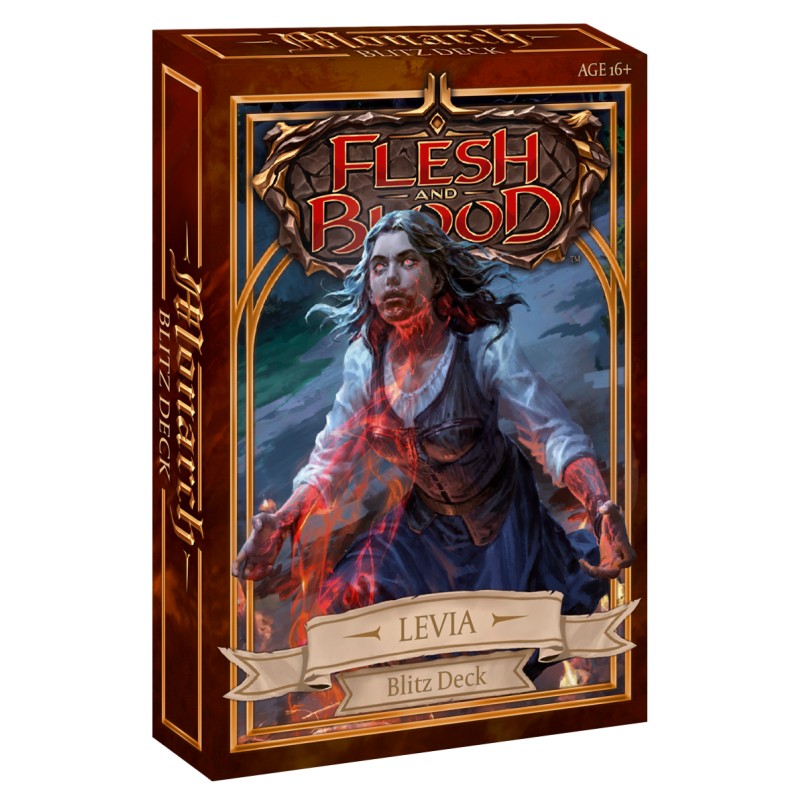 Flesh & Blood: Monarch Blitz - Levia "Shadow Brute"Monarch to czwarty samodzielny dodatek przedstawiający czterech nowych bohaterów z całą nową mechaniką, bazujący na klasycznym konflikcie światła i cienia.