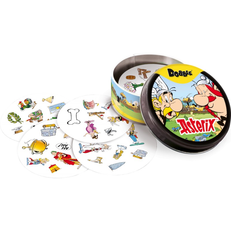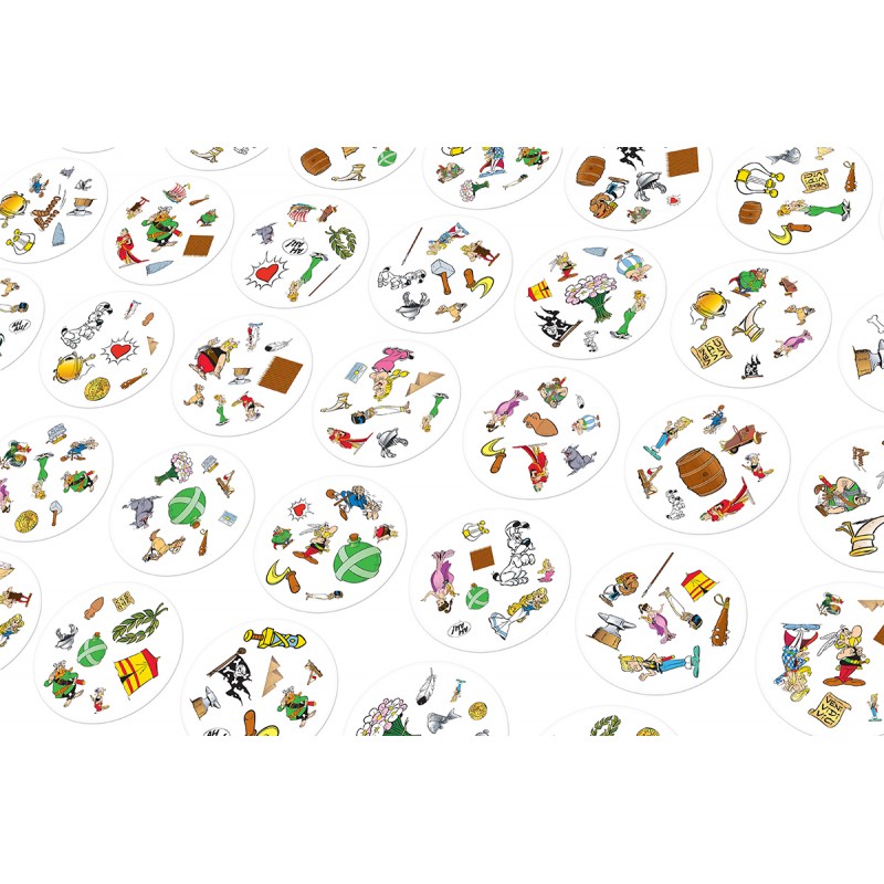 Asteriks, Obeliks, Panoramiks i inni mieszkańcy wioski szykują się do obrony przed Rzymianami! Zebrali najważniejsze rzeczy, a po drodze zawitali na karty Dobble, by cieszyć najmłodszych i zachęcać ich do rozwijania refleksu i spostrzegawczości.