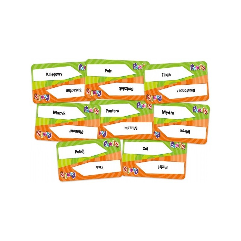 -Gra zawiera 220 kart, a na każdej 2 słowa gwarantują niekończącą się zabawę (przy każdej grze używamy tylko około 40 słów (zależy od liczby graczy);