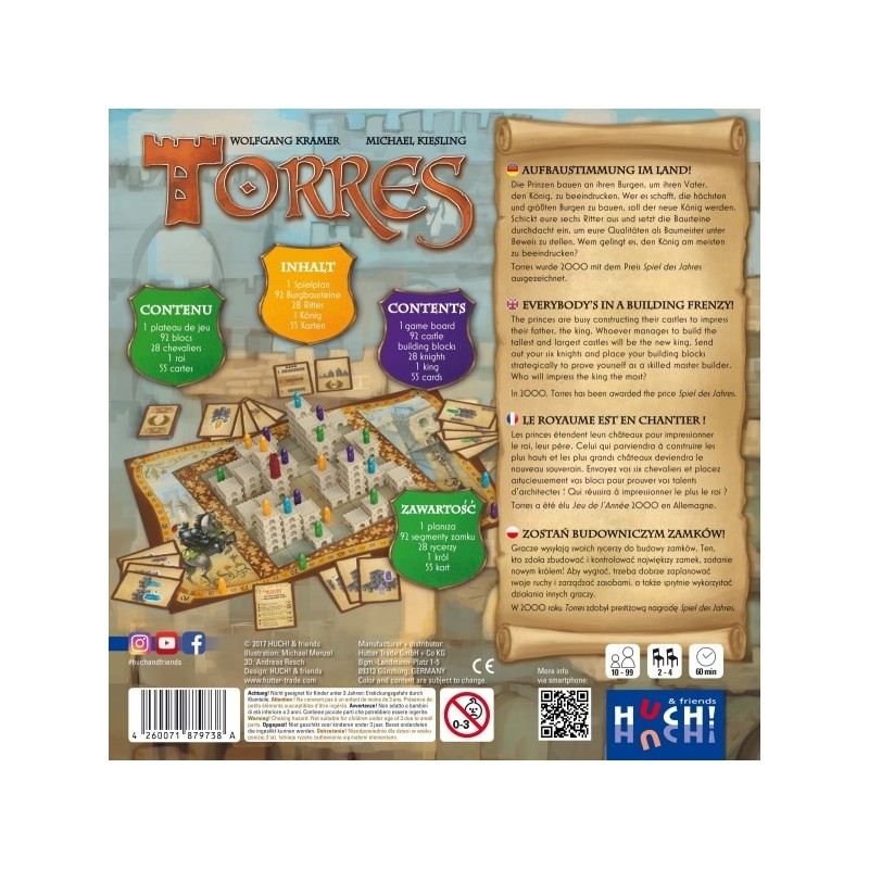 Gra Torres zdobyła najważniejszą nagrodę branży planszówkowej - tytuł Gry Roku 2000 w Niemczech. Również GAMES Magazine przyznało jej 1 miejsce w 2000 roku. Deutscher SpielePreis przyznało jej w tym samym roku zaszczytne 2 miejsce.