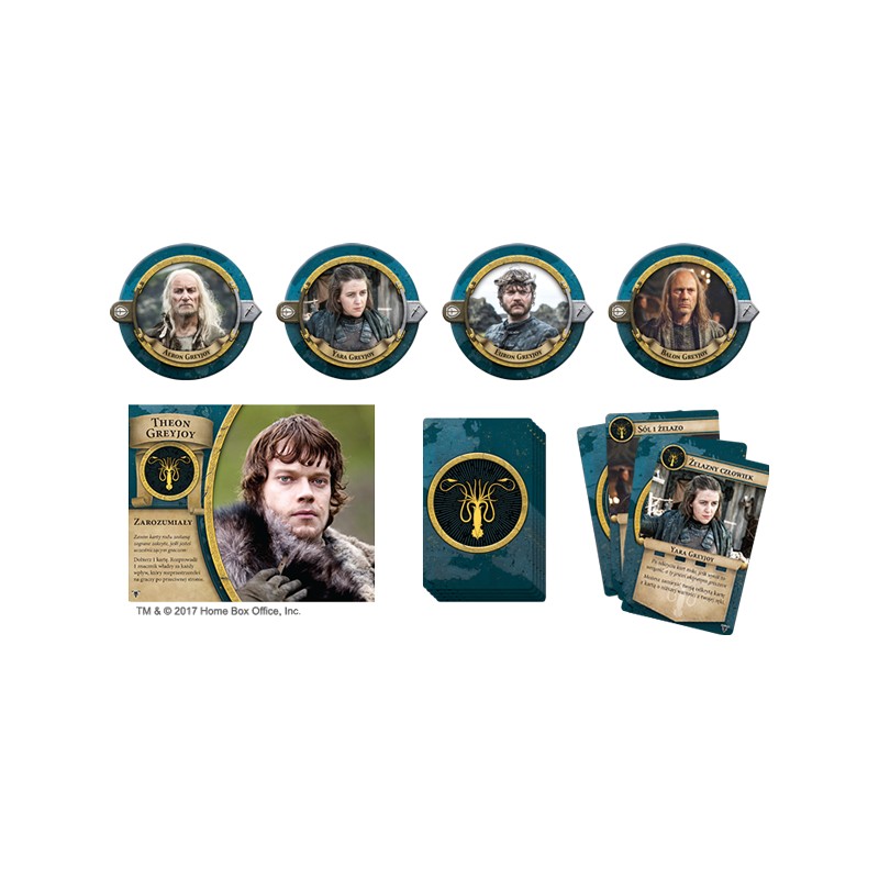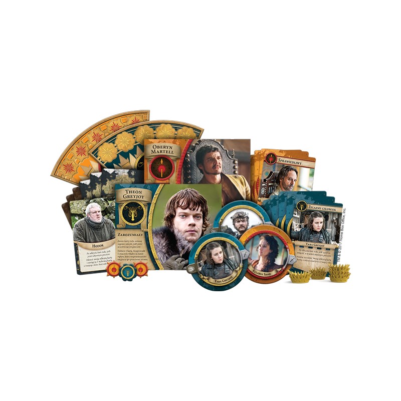 Greyjoyowie i Martellowie dołączają do konspiracji, bitw i zdrad w Żelaznym Tronie. Podobnie jak 5 Wielkich Rodów z zestawu podstawowego, każdy z nowych rodów wchodzi do gry z 5 arkuszami liderów, 5 żetonami postaci i talią rodu pełną niespodzianek.
