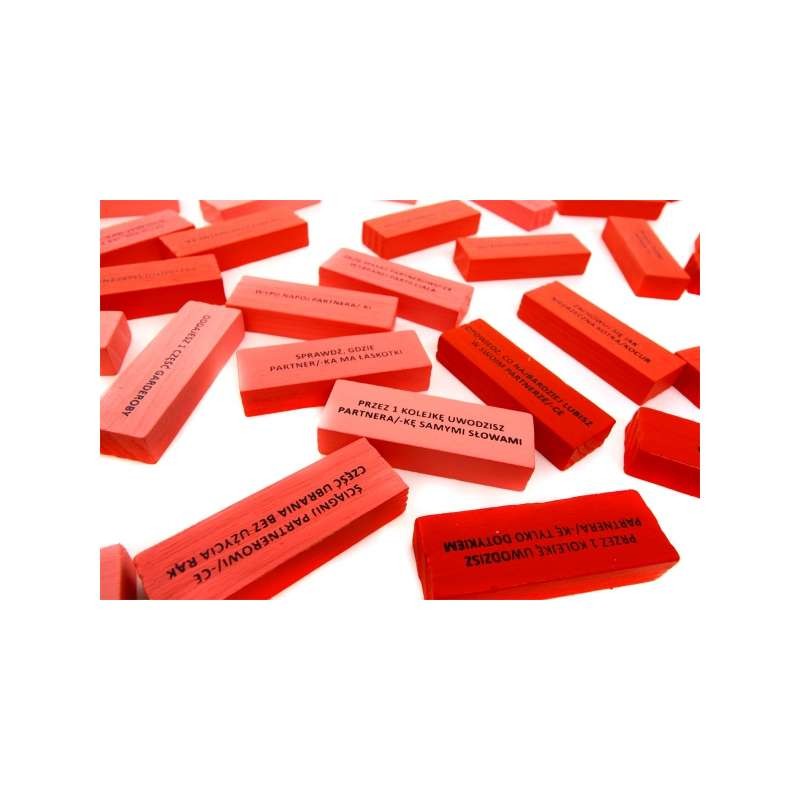 - 48 drewnianych klocków z pikantnymi zadaniami
