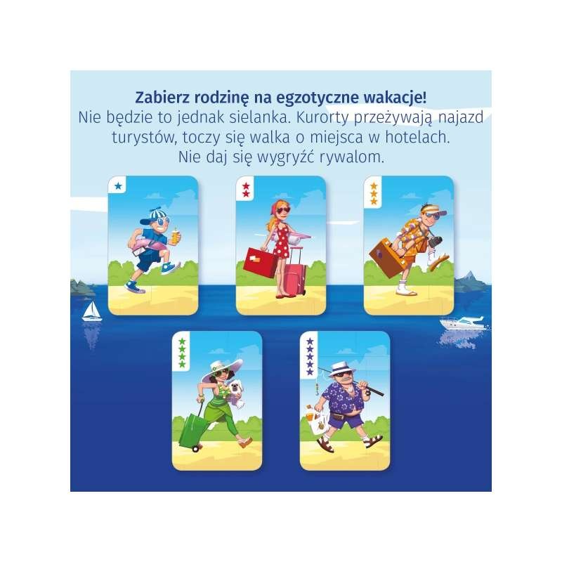 Zabierz rodzinę na egzotyczne wakacje. Nie będzie to jednak sielanka. Kurorty przeżywają najazd turystów i toczy się walka o miejsca w hotelach. Nie daj się wygryźć przeciwnikom!