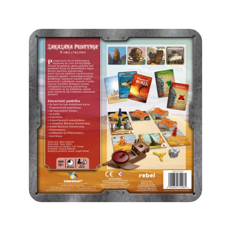 Zakazana pustynia to kolejny projekt w stylu popularnej Zakazanej Wyspy, w którym grupa uczestników jednoczy się przeciwko mechanice gry. Na samym początku graczom zostają przydzielone role, które definiują specjalne zdolności i początkowe miejsce na planszy. Następnie uczestnicy zabawy muszą skoordynować swoje działania w ten sposób, by jak najszybciej zdobyć zestaw potrzebnych przedmiotów, zanim kolejne fragmenty pustyni na dobre znikną im z oczu i już na zawsze pozostaną niedostępne.